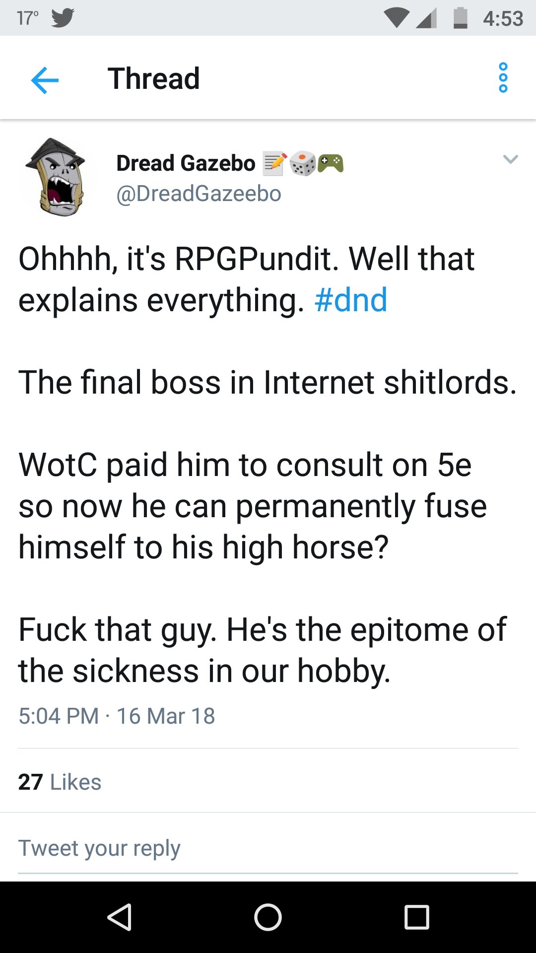 Them, when I Trigger Every SJW Swine in the RPG Hobby at once: "How can we take down the Pundit? I know! We'll call him The Final Boss of Internet Shitlords!"